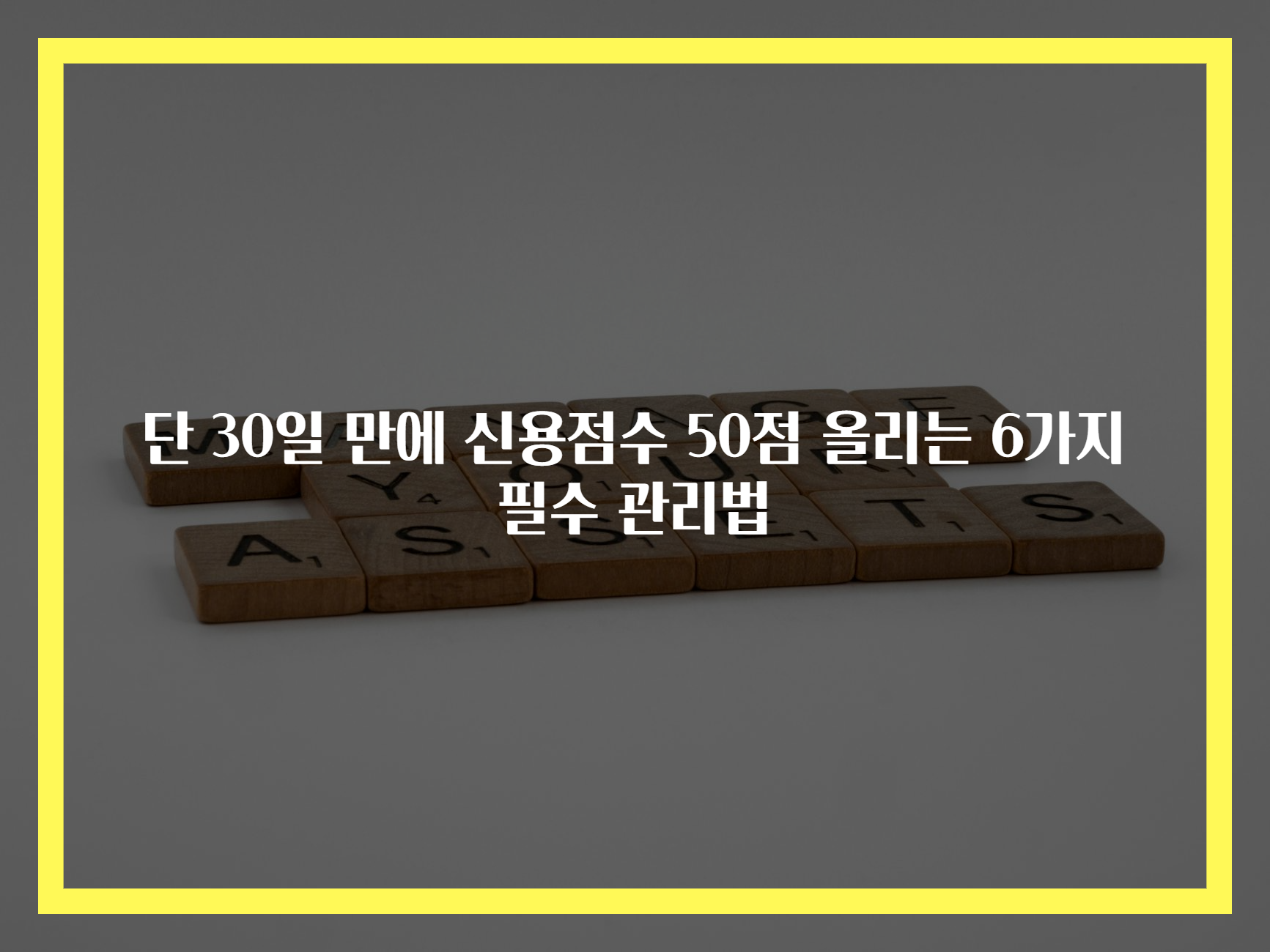 신용점수는 일반적으로 300점에서 850점으로 측정됩니다. 각 금융기관에서는 점수를 다르게 평가할 수 있으나, 대체로 700점 이상이 좋은 신용으로 간주됩니다. 오늘은 단 30일 만에 신용점수를 50점 올릴 수 있는 6가지 필수 관리법을 소개하겠습니다. 이 관리법들은 누구나 쉽게 적용할 수 있으며, 특히 신용역사나 점수가 낮은 사람들에게 도움이 될 것입니다.