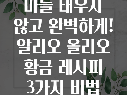 마늘 태우지 않고 완벽하게! 알리오 올리오 황금 레시피 3가지 비법 꼭 기억하시고, 오늘 저녁엔 여러분도 셰프입니다! 🌟🍝🎉