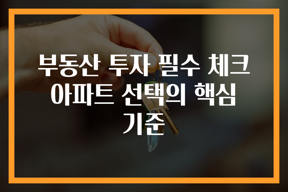 부동산 투자 필수 체크 아파트 선택의 핵심 기준