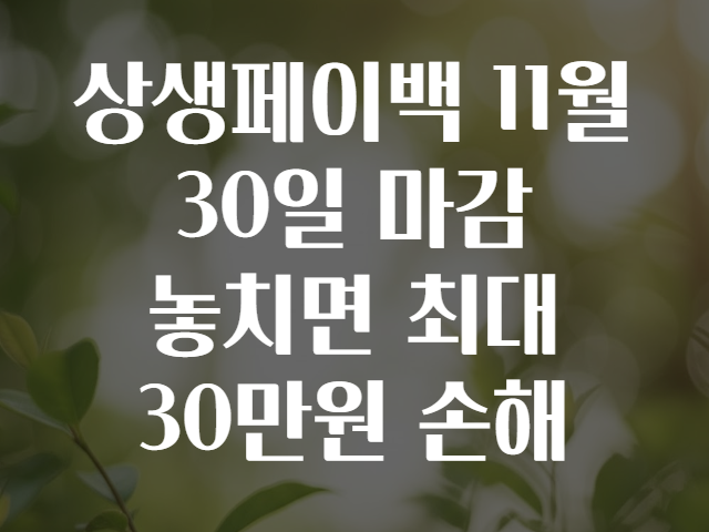 ❓ 상생페이백 11월 30일 마감, 놓치면 최대 30만원 손해? 지금 꼭 챙겨야 하는 이유! 💸🔥