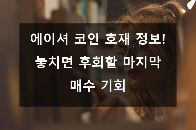 안녕하세요, 투자에 관심 있는 여러분! 혹시 “에이셔 코인”이라는 이름 들어보셨나요? 🤔 최근 암호화폐 시장에서 뜨거운 반응을 얻고 있는 이 코인은 이제 막 폭발적인 성장세에 진입하고 있습니다. 오늘은 에이셔 코인의 최신 호재 소식과 함께, 왜 지금이 ‘마지막 매수 기회’인지 자세히 파헤쳐 보려고 해요. 💎📈