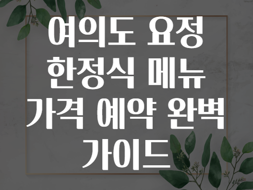📅 여의도 한정식 예약 꿀팁 🔥 쉽고 빠르게 예약하는 5단계!