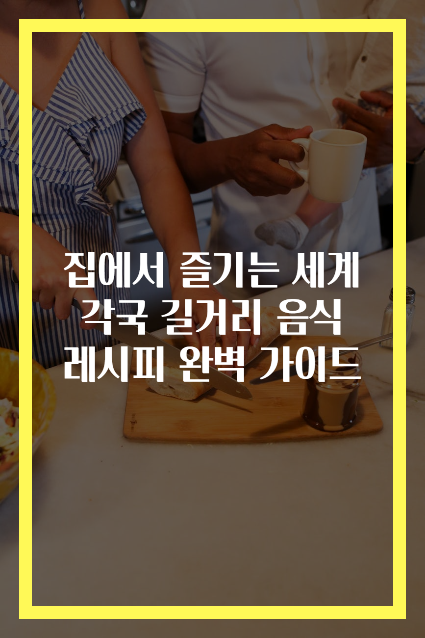 메타 설명: 집에서 즐길 수 있는 세계 각국의 길거리 음식 레시피! 떡볶이, 타코, 아란치니, 타코야끼 등 다양한 요리를 소개합니다.