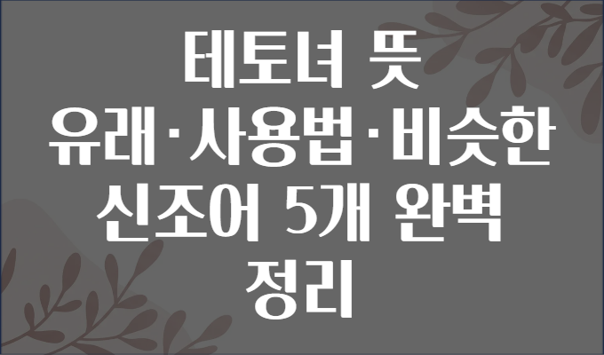 요즘 SNS나 인터넷 커뮤니티에서 ‘테토녀’라는 단어 많이 보셨죠? 🤔 “도대체 무슨 뜻일까?” 궁금증 가득한 분들을 위해 준비했습니다! 오늘은 테토녀의 뜻, 유래, 올바른 사용법과 함께 비슷한 신조어 5가지까지 완벽하게 정리해 드릴게요. 💬 인터넷 문화나 신조어에 관심 있는 분들, 실제 대화나 글 속에서 자연스럽게 쓰고 싶은 분들에게 딱 맞는 내용입니다! 🎯