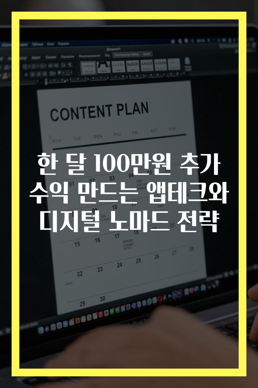 메타 설명: 한 달 100만원을 추가 수익으로 만드는 앱테크와 디지털 노마드 전략을 알아보세요. 앱을 통한 수익 창출 방법과 디지털 유목민 라이프를 심도 있게 탐구합니다.